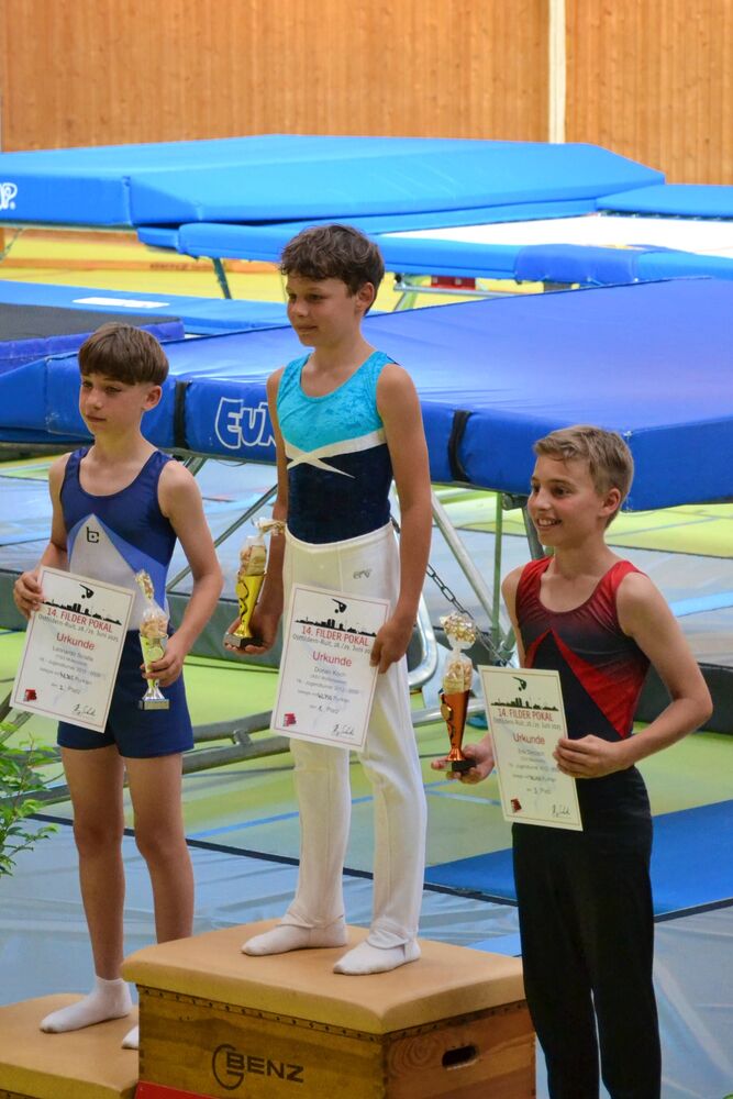 Der außer Konkurrenz in seiner Altersklasse (9-11) gestartete Lennart konnte sich zwar fürs Finale qualifizieren, musste sich bei der Endwertung der starken Konkurrenz der Mädchen in seiner Altersklasse stellen. Den ersten Platz erturnte sich souverän die erst kürzlich im Verein aufgenommene Valeria, in ihrer Heimat Ukraine zuletzt drittplatzierte in landesweiten Wettbewerben. Dritte wurde Vereinskollegin Amelie, knapp geschlagen von Johanna von der TSG Wiesloch.