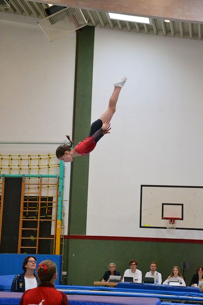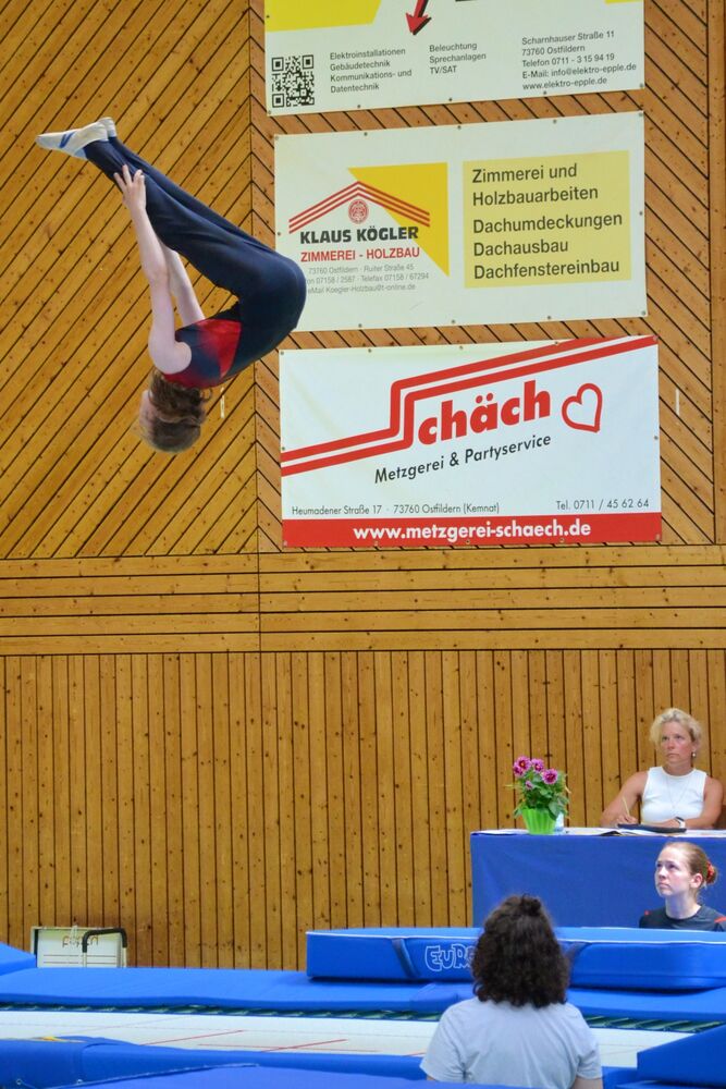 Bevor der eigendliche Wettkampf beginnen konnte, gab es eine beeindruckende Darbietung von Hannah Lindemaier, mit ihrem Versuch sich für die Deutschen Meisterschaften zu qualifizieren. Trotz hoher Schwierigkeit gelang es der Sportlerin aus Wolfartsweier nicht, die notwendigen Gesamtpunkte zu erturnen.