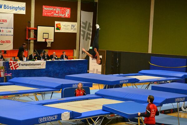 Nach der guten Resonanz im letzten Jahr hat der TSV Mannheim auch 2025 eine Vereinsmeisterschaft ausgerichtet. Damit wirklich alle Aktiven am Vereinsinterternen Wettbewerb teilnehmen konnten wurden vier Wettkampfklassen angeboten. Die Juniorklasse, für unsere Jüngsten, die in der Lage sind 5 unterschiedliche Sprünge ohne Zwischensprung zu turnen. In der Basisklasse mussten 10 beliebige unterschiedliche Sprünge gezeigt werden. Für die Aktiven der Wettkampfgruppen war die Masterklasse vorbehalten. Hier muss eine beliebige Pflichtübung und eine Kürübung geturnt werden. In der Masterklasse gehen auch HD und TOF in die Wertung ein. Den Trainer*Innen traten in der Special-Klasse an und zeigten, dass sie ihr Metier in Theorie und Praxis beherrschen. Besonders gefreut hat, dass erneut der Nachwuchs in der Juniorklasse gut besetzt war.