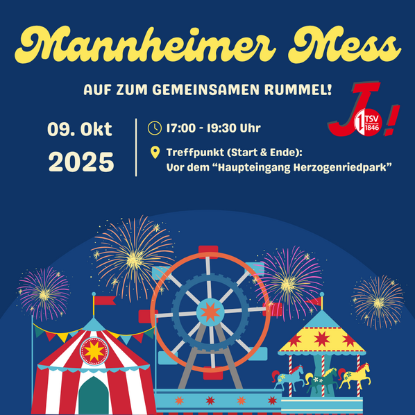 es ist aktuell wieder soweit: Die Mannheimer Messe lädt mit ihren Fahrgeschäften & Ständen Groß und Klein zum Verweilen ein. Daher laden wir als TSV Jugend alle unseren jungen Mitglieder zum gemeinsamen Rummel ein: